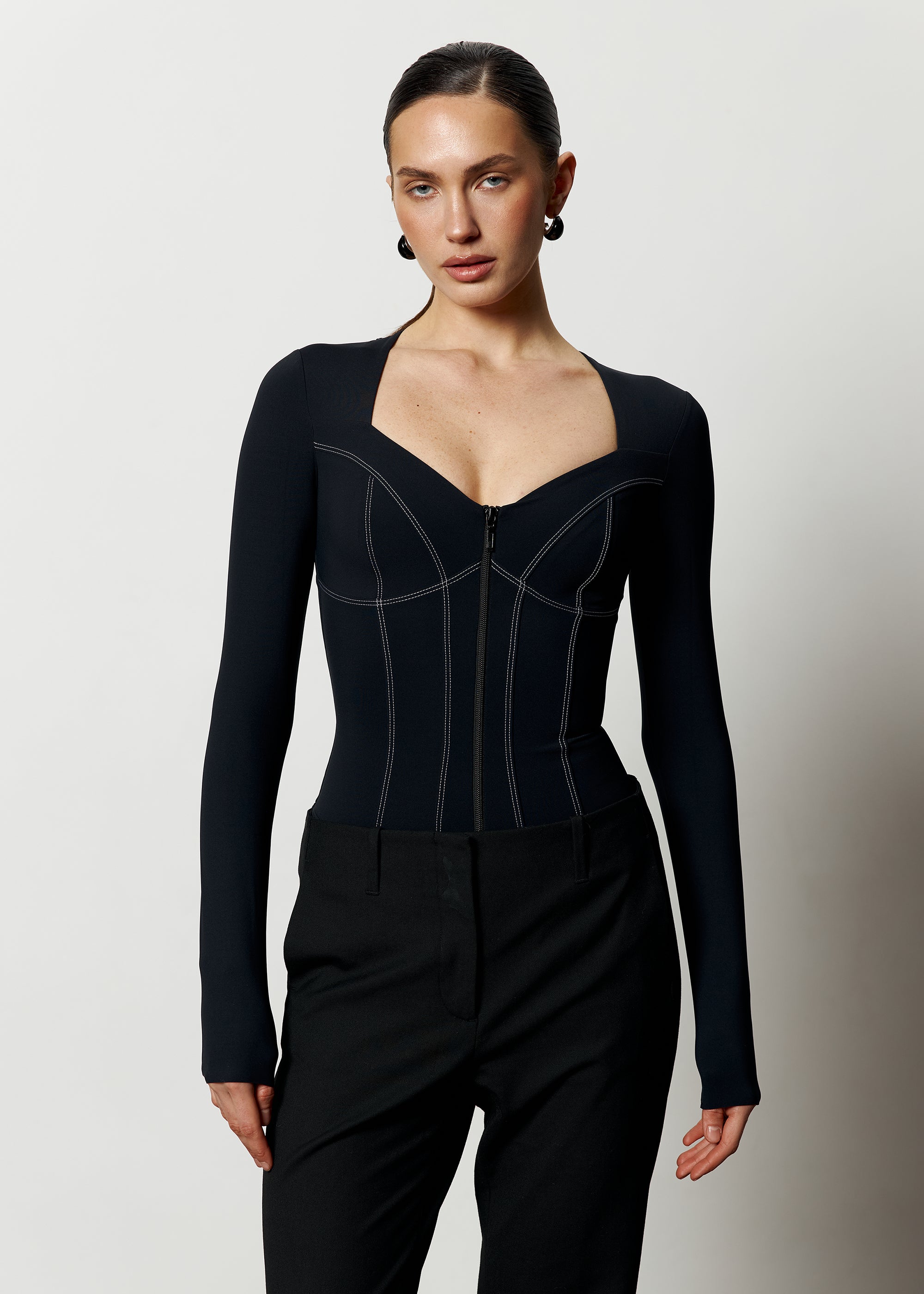 Боді доповнений блискавкою, що додає функціональності та акценту.