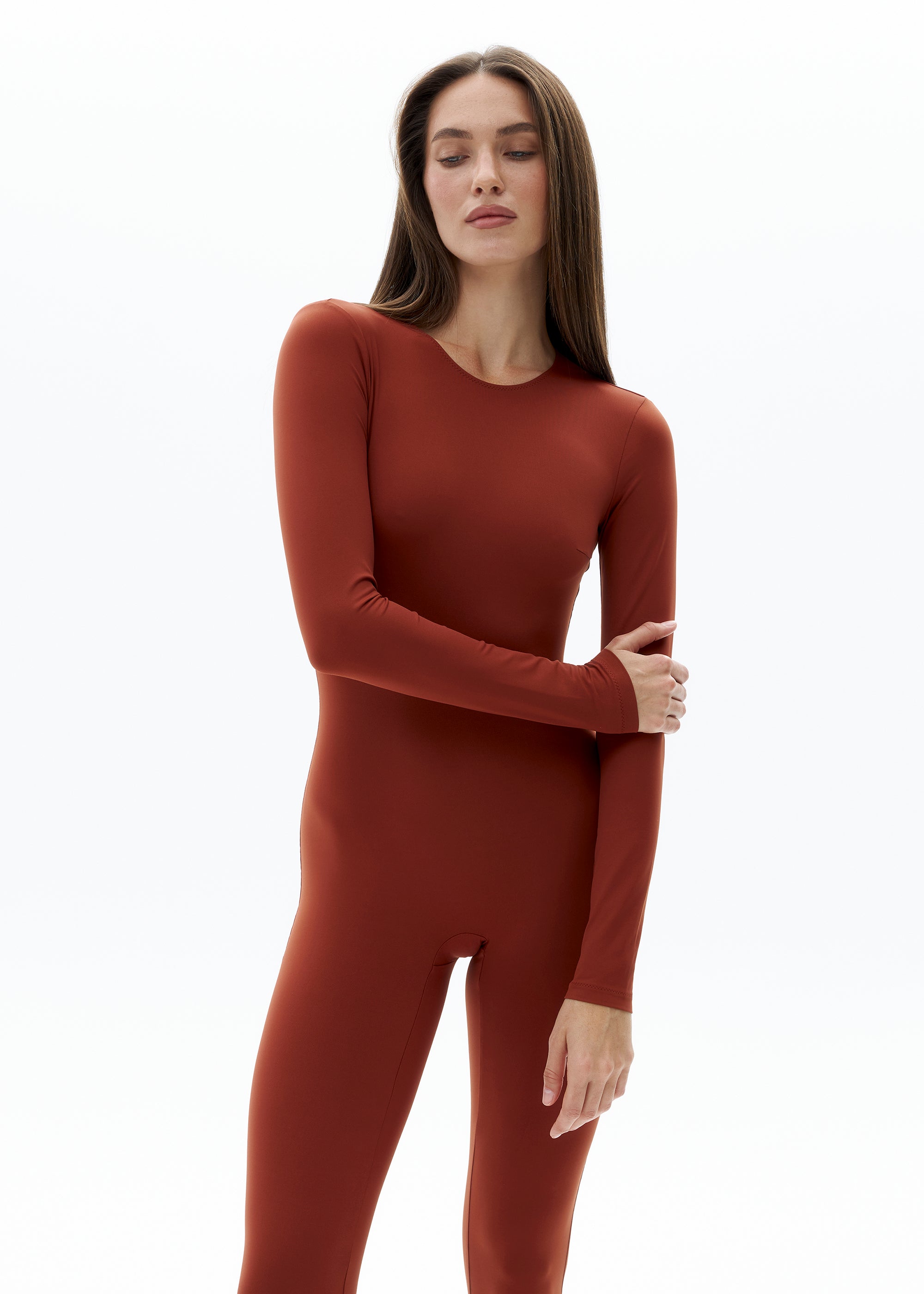 Thanks to its snug yet delicate fit, the jumpsuit accentuates the body's natural lines and ensures absolute comfort during movement.